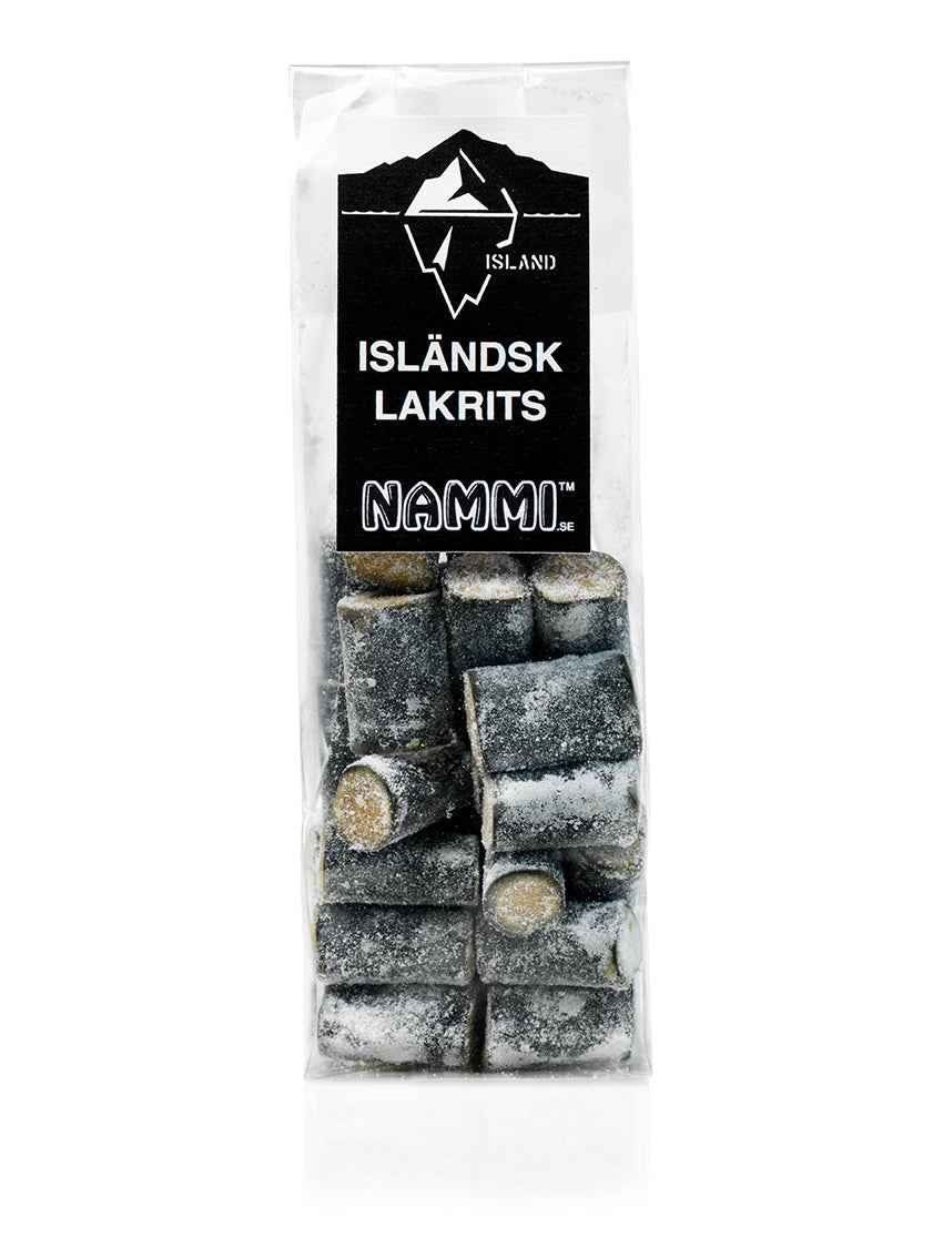 Socker, glukossirap, vetemjöl, vatten, ammoniumklorid, vegetabiliskt fett(kokos), majsstärkelse, rålakrits, ammoniumklorid, salt, sorbitol, gelatin, färgämne (vegetabilisk kol), konserveringsmedel (natriumbensoat), aromer(anisolja), surhetsreglerande medel (mjölksyra).